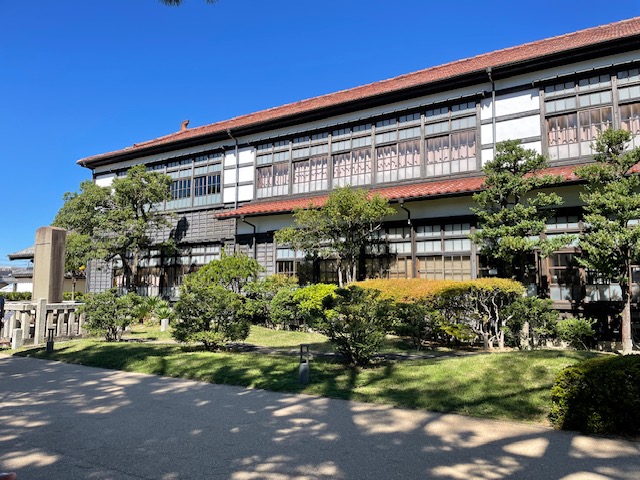 11時過ぎに萩・明倫センターに到着し、まずは萩・明倫学舎内にある「萩・明倫レストラン・カフェ萩暦」で腹ごしらえです。この建物は長州藩の藩校・明倫館の跡地に立地され、かつては小学校として利用されていたとても立派な木造建築です。本館は国登録有形文化財だそうです。
