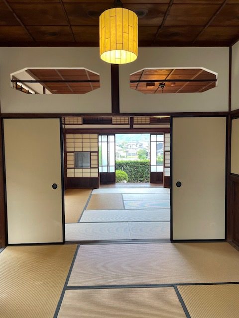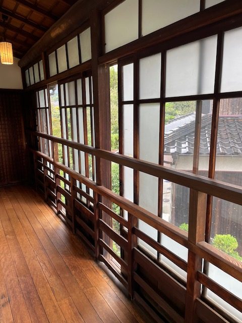 ここから徒歩で、伊藤博文旧宅。別邸へ向かいました。旧宅の方はこじんまりとした昔ながらのお家で外側から見学できます。その横に建っているのが別邸なのですが、こちらは東京にあった建物の一部を移築したものだそうです。別邸は移築分だけでもかなり広いのですが、実際東京にあった建物の平面図は想像を超える広さでした。さすが総理大臣4回やってるだけのことはありますね。でもこの建物が完成した数年後に伊藤博文は暗殺されたので、あまり住んでいなかったそうです。